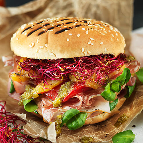 Vetemjöl, vatten, socker, rapsolja, jäst, sesamfrö, havreskållning, surdeg på vete, salt, vegetabiliskt emulgeringsmedel mono- och diglyceriders mono- och diacetylvinsyraestrar (raps).