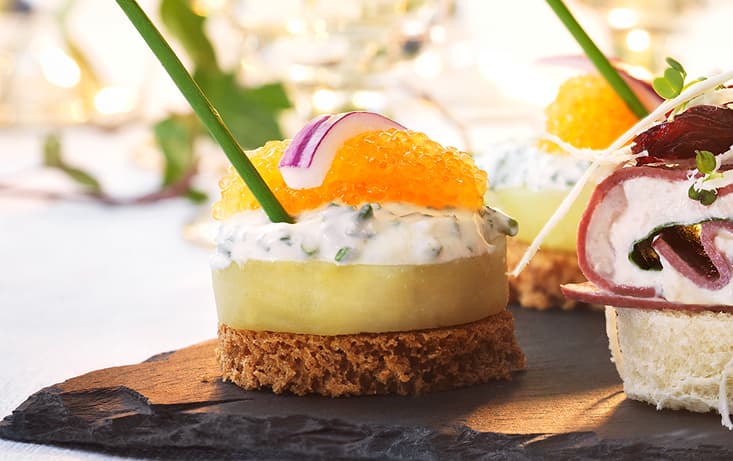 Snitsa till firandet med dessa goda snittar! Färsk Kavring och JätteFranska toppade med en krämig saffransdoftande rökröra som bjuder på både lyx och julkänsla.