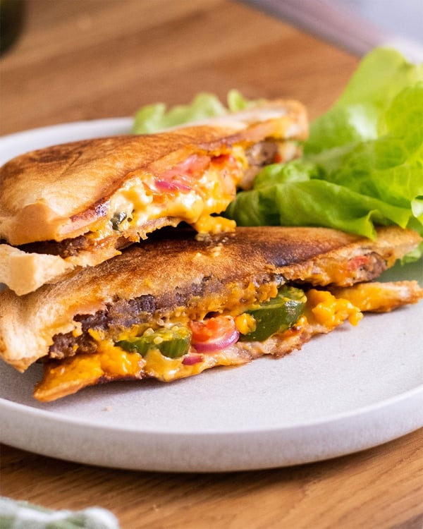Gör din cheeseburgare extra krispig med en toastig twist! Den här cheeseburger–toasten kombinerar allt det goda från en klassisk burgare – cheddar, dressing, saltgurka och saftigt kött – pressat mellan två gyllene, smörsteka brödskivor. Enkelt, snabbfixat och otroligt gott!