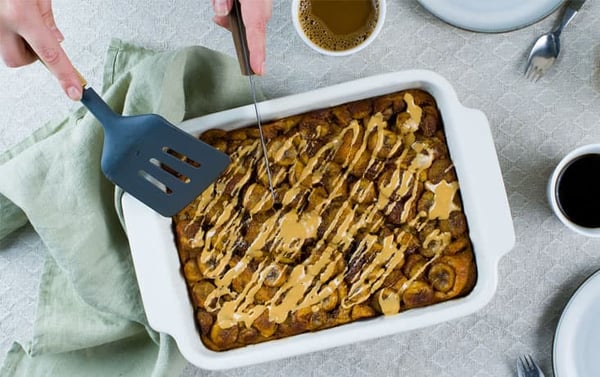Läs merBananbrödskaka där fluffig JätteFranska blandas ihop med krämig bananglasyr och toppas med jordnötssmör
