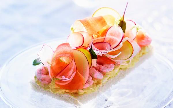Läs merLandgång med ägg- och pepparrotsfärskost, hyvlade grönsaker och räkor