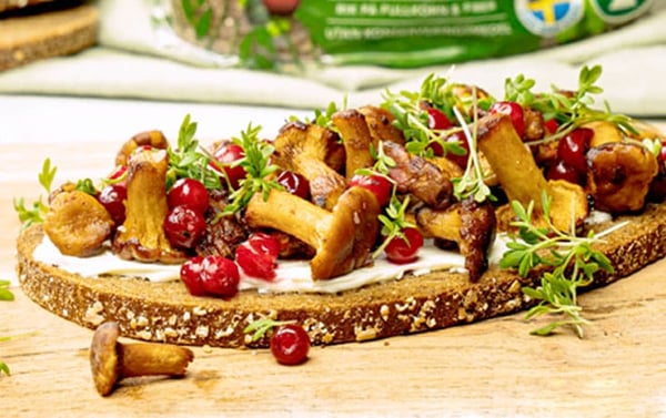 Läs merKantarellmacka med hjälp av smörstekta kantareller, en skiva mustig LingonGrova och rårörda lingon.
