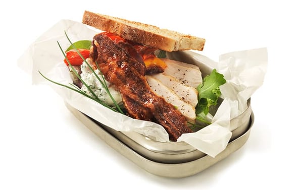 Läs merMacka med grillad kyckling, baconröra och rostad paprika.