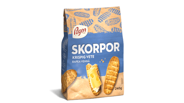 Våra knaprigt krispiga veteskorpor bakas på få, noggrant utvalda ingredienser och rostas långsamt för att få fram den gyllene färgen och den runda, goda vetesmaken.