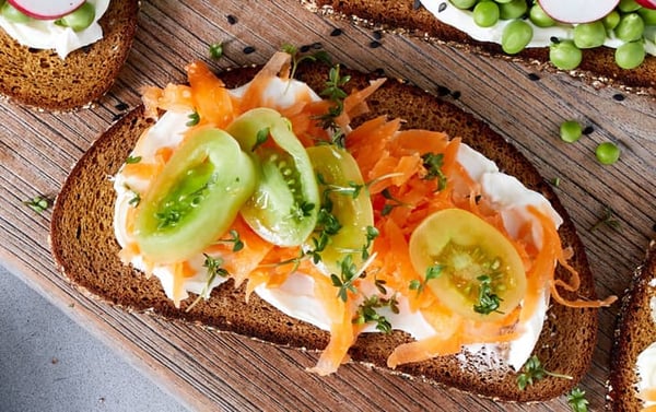 Läs merEn fräsch macka med färskost, picklad morot och gröna tomater.